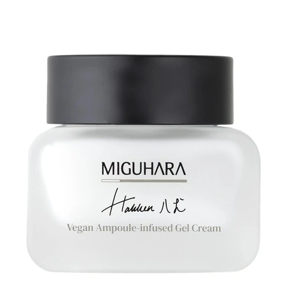 Miguhara - Vegan Ampoule-Infused Gel Cream - hloubkově hydratační krém-gel na obličej. Má jedinečnou texturu, která se dobře vstřebává a poskytuje pleti vyživující účinek. Kosmetický přípravek obsahuje extrakt z kmenových buněk plesnivce alpského, který je známý svými účinky proti stárnutí. Dále obsahuje extrakt z pupečníku asijského a panthenol, které mají zklidňující a regenerační účinky. Ceramid NP posiluje hydrolipidovou bariéru a alantoin zklidňuje a hydratuje suchou pokožku. Složení výrobku je veganské.
